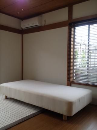 部屋は、フローリング、ベッド、エアコン、押入れ(1畳分上下)