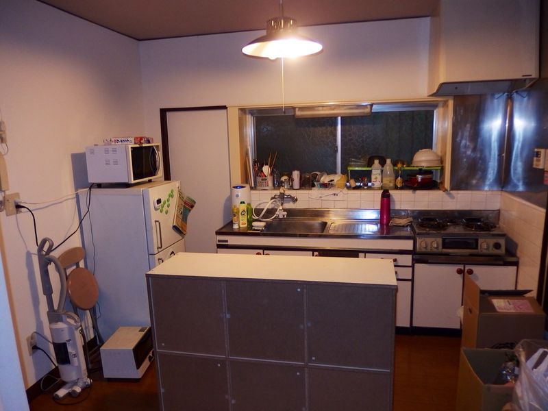 冷蔵庫、ガスコンロ3口、炊飯器2台、電子レンジ、オーブントースター、湯沸かし器、調理器具・食器類一式など