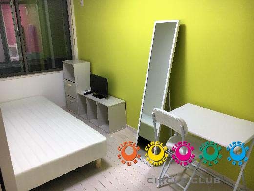 各部屋にはテレビ、ベッド、冷蔵庫、机などを完備!