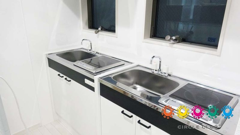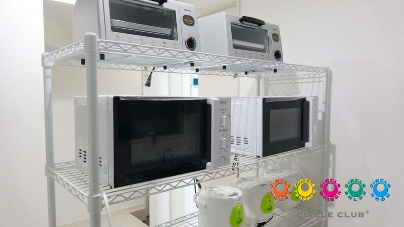 共用部には、キッチン、トイレ、シャワールーム、家電が揃っていて
