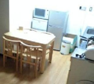 中型冷蔵庫・電子レンジ・洗濯機・調理器具・ダイニングテーブル・ソファーを設置済です。