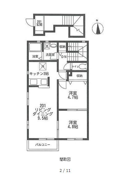 2LDKの一室です。広いベランダ付き。日差し良好。家具家電完備。自転車駐車場