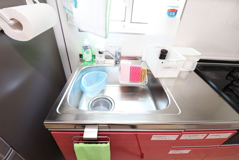 共有スペースにはキッチン用品や家電が充実してます。