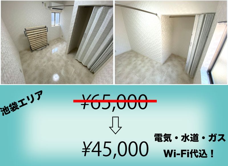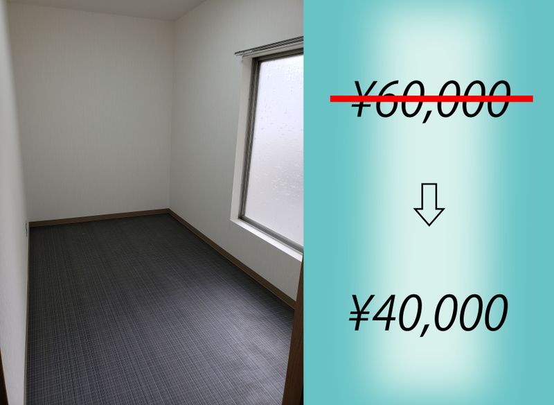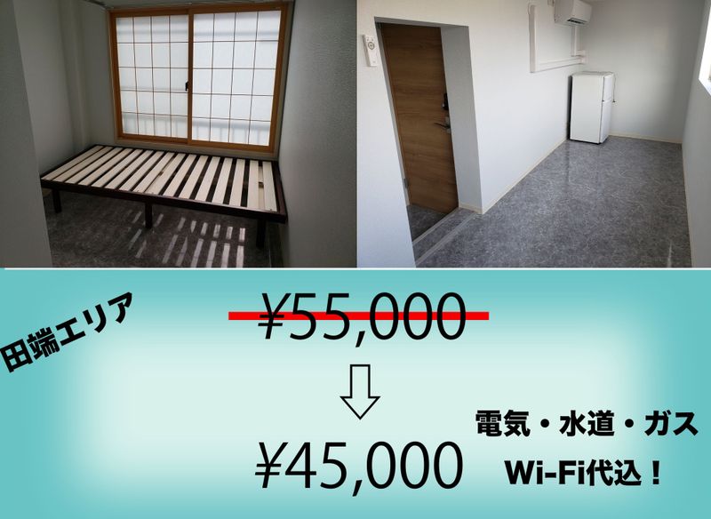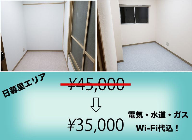 一番お安いと通常賃料(光熱費込)55,000円〜→35,000円〜