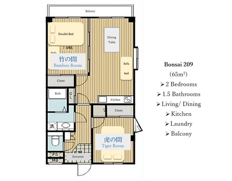 こちらの部屋(「虎の間」)は2LDKマンションの中の1つの部屋です。収容人数は2名まです。