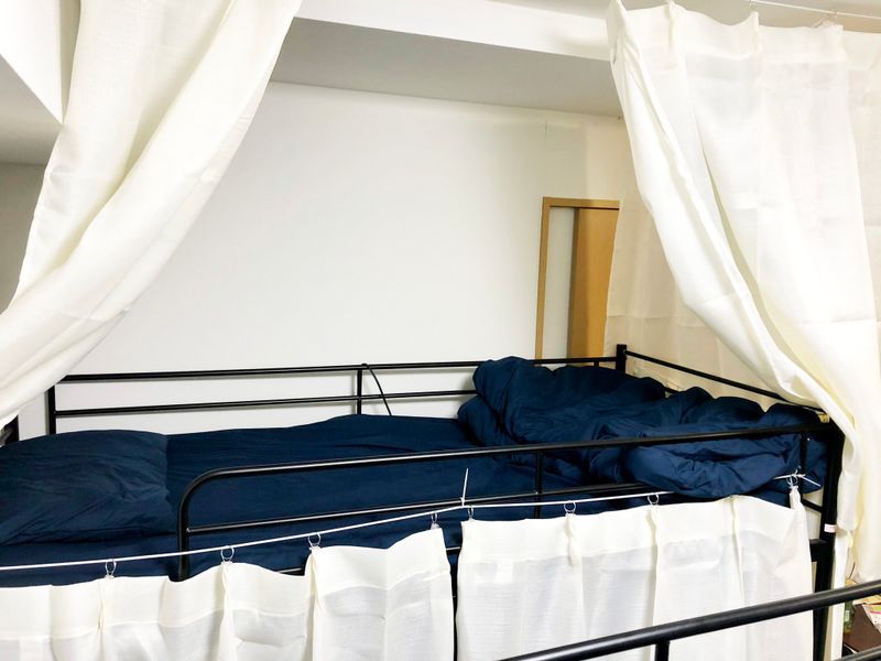 2段ベッドのカーテン付ドミトリータイプです。