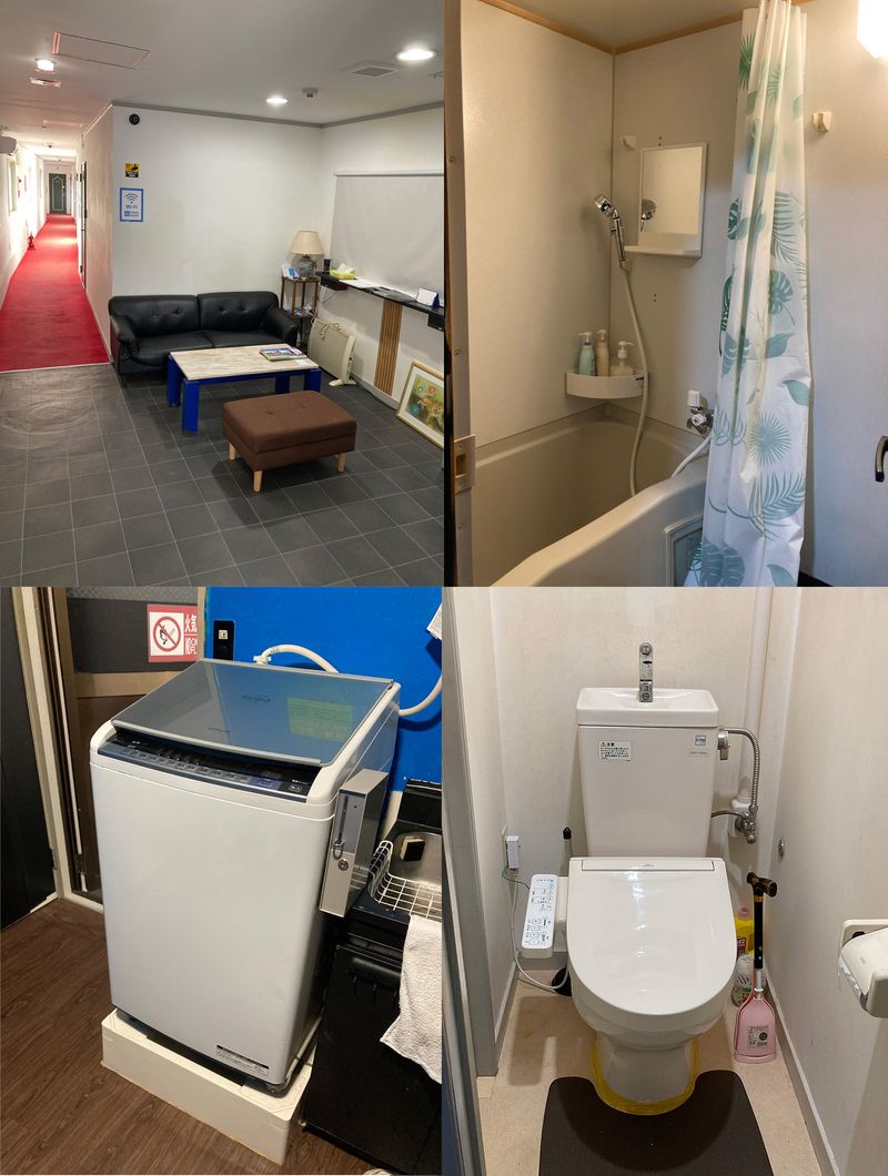 キッチン(電子レンジ、冷蔵庫)、シャワー、洗濯機、トイレ(ウォシュレット付き)、掃除機はシェアとなります。共用部分の清掃はすべてこちらで致します。