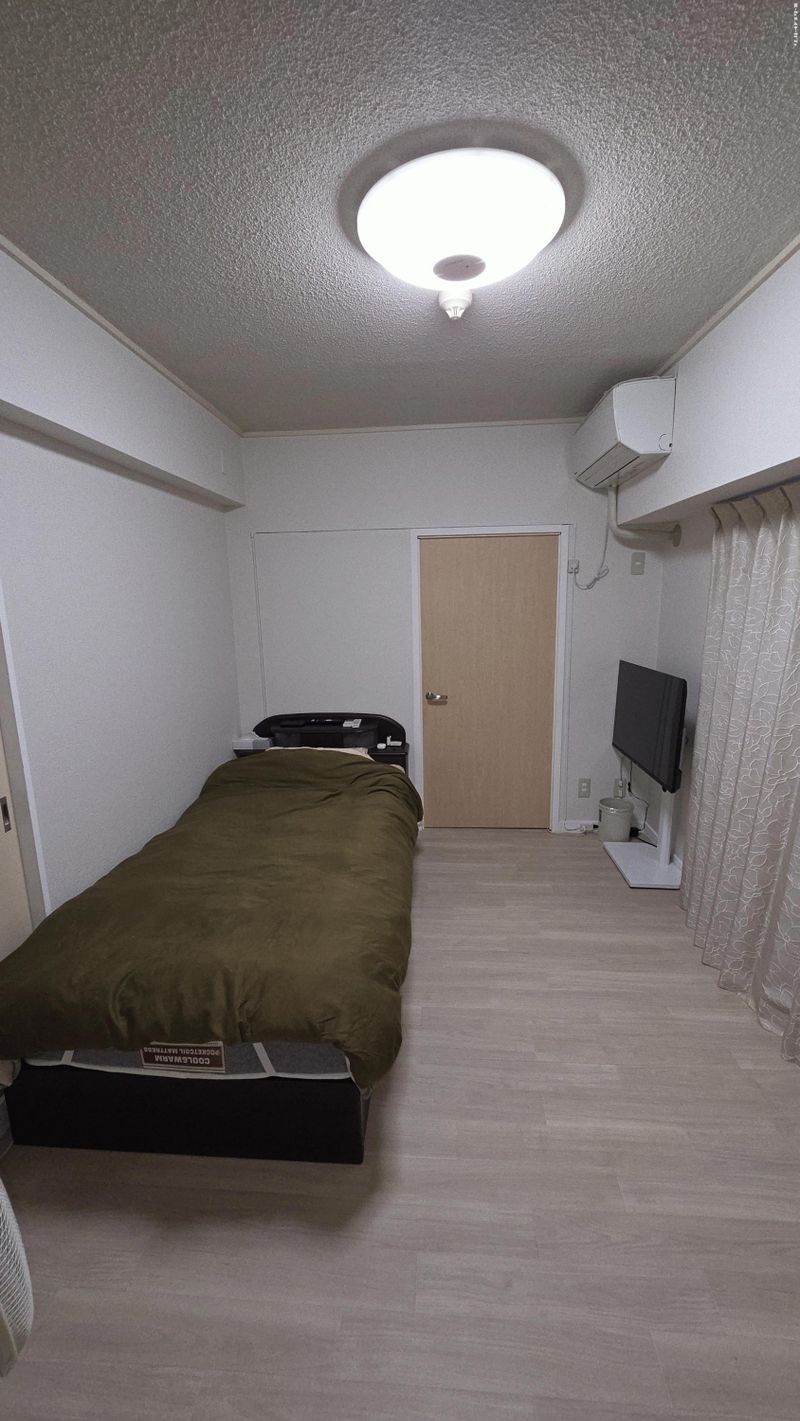 ベッド、エアコン完備、Wi-Fi(光)、AndroidTV(Netflix無料)、自転車あり。